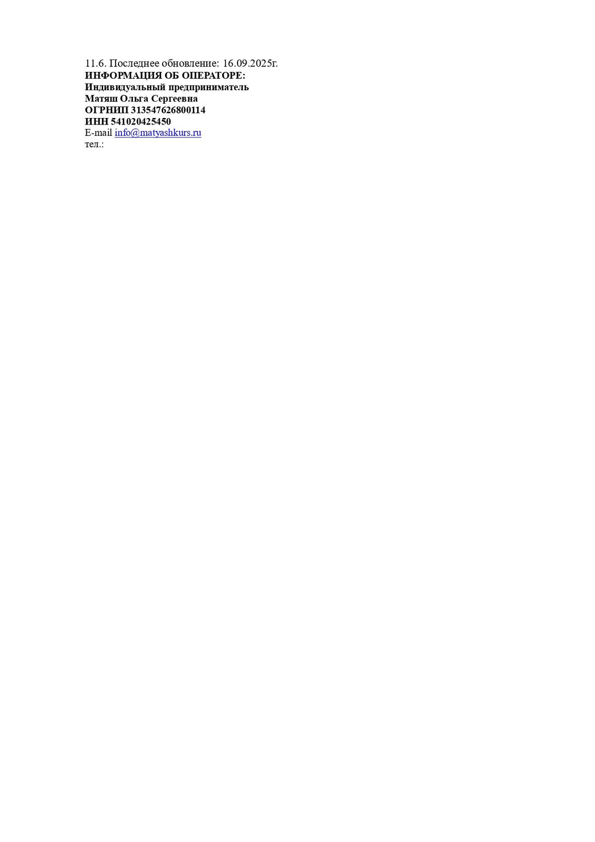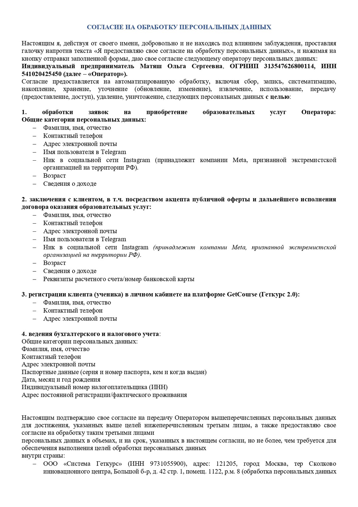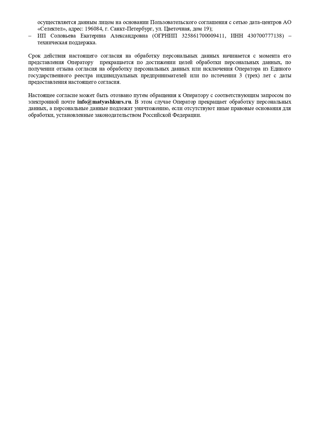 Продолжая использовать сайт, Вы даете ИП Матяш Ольге Сергеевне (ОГРНИП ИНН 541020425450 ОГРНИП 313547626800114) согласие на обработку файлов cookies и пользовательских данных. Если Вы не согласны, просим отключить обработку файлов cookies и сбор пользовательских данных в настройках Вашего браузера или покинуть сайт.
